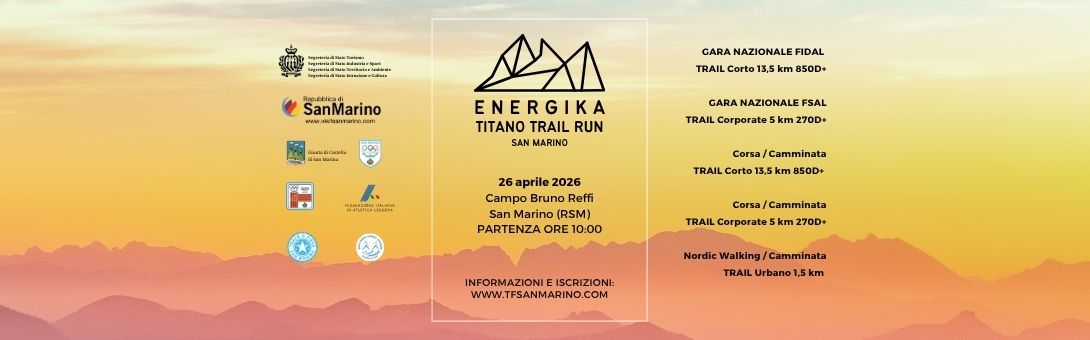 Domenica 26 aprile, nuove avvincenti sfide, sulle distanze di 13,5 km, 5 km e 1,5 km sugli spettacolari sentieri trail della Repubblica di San Marino. Tutti i percorsi permettono di scoprire alcuni dei luoghi più suggestivi del territorio sammarinese, lungo i sentieri del Cammino del Titano, con panorami unici e ricchi di fascino tra i quali spicca il Monte Titano, autentica icona del territorio riconosciuta dall’UNESCO come Patrimonio Mondiale dell’Umanità. Punto di ritrovo e partenza è il Campo Bruno Reffi, nel cuore del centro storico di San Marino (47890 – RSM). Le iscrizioni, il programma, il percorso e il regolamento ufficiale sono disponibili su ENDU e sul sito web: www.tfsanmarino.com.